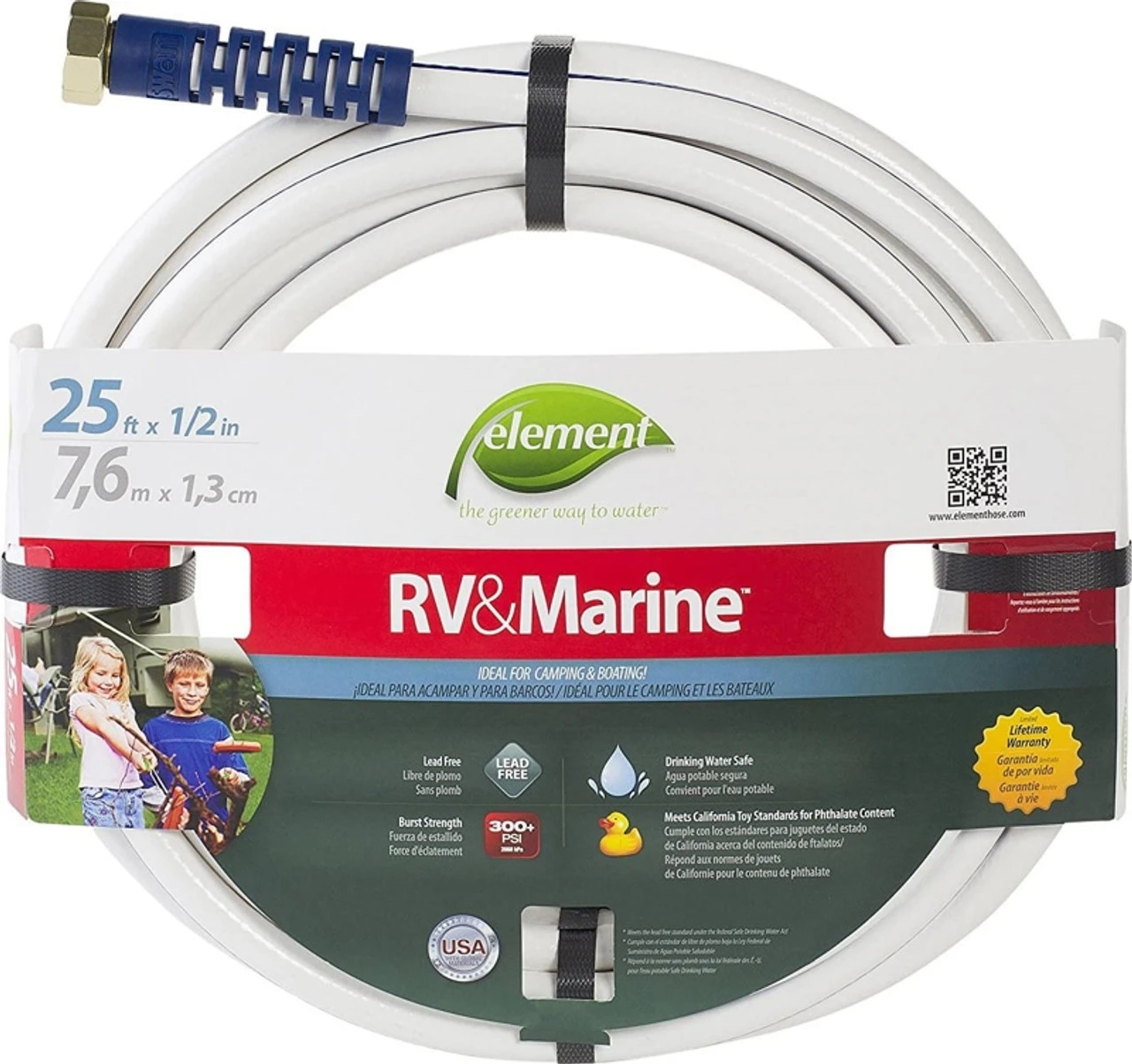 - Drinking water safe garden hose measures 25′ x 1/2″