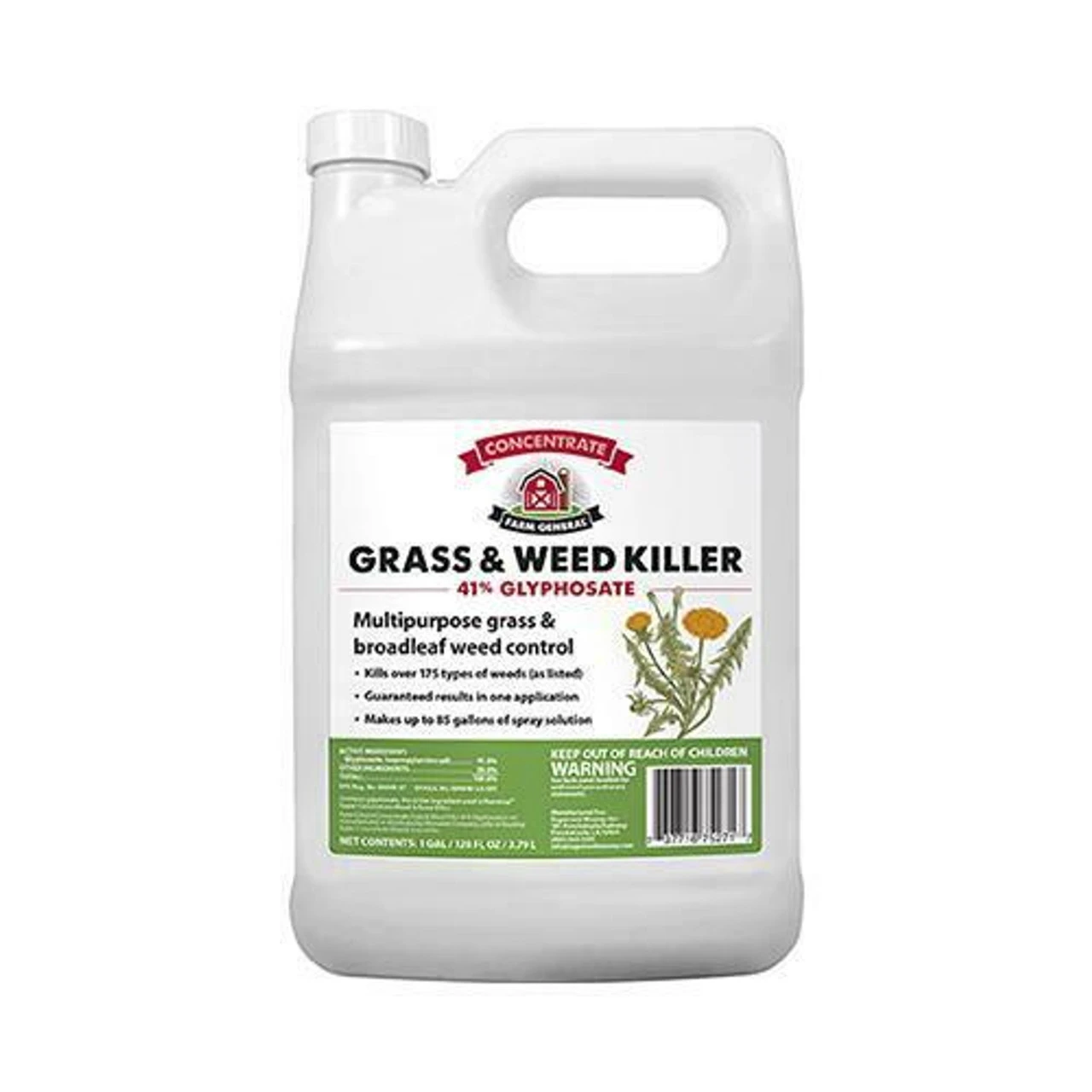 Farm general, gallon, 41% glyphosate grass & weed killer, a non-selective, broad spectrum herbicide for agricultural, residential & industrial use in non-crop areas, been used in forestry site preparation, at plant nurseries, & along roadsides & railroads as a way to keep the plants you want & kill every plant you don’t, controls over 150 annual & perennial weeds, woody brush, vines, & trees within days of application with no residual soil activity, perfect for large scale application & roundup ready crops, may be mixed with ammonium sulfate, drift control additives, & dyes.