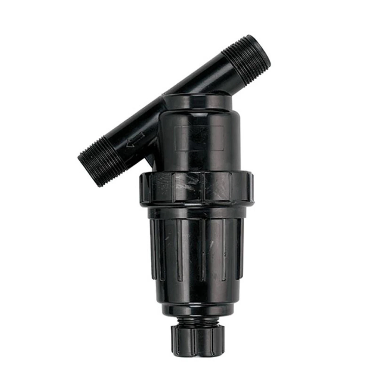 This drip filter is designed to remove debris from the water source, reducing clogged emitters and sprinkler nozzles. This convenient flush port allows filter cleaning without filter removal.