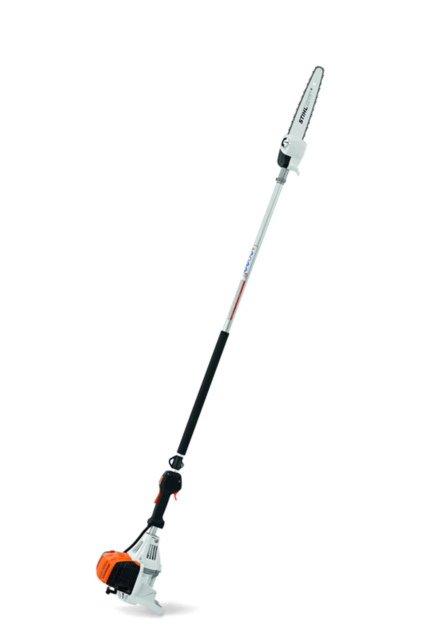 Built with the same features as the HT 100 fixed-length pole pruner, but with a larger displacement engine for tough cutting jobs. Put that ladder away for good. Designed with the same fixed length shaft as the HT 100 but with more power, the HT 130 STIHL pole pruner has a proven low-emission engine â great for heavier tree maintenance jobs. Well balanced, this tool is the best way to get the most out of your pruning tasks. Note: The actual listed guide bar length can vary from the effective cutting length based on the gear head design.